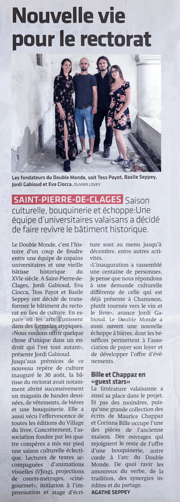 Le Double Monde dans le Nouvelliste sous la plume d’Agathe Seppey